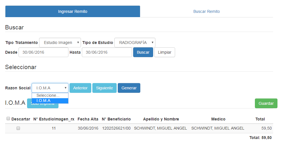 Genere sus remitos por obra social o general en base a las prácticas médicas realizadas y aplicando diferentes filtros. Descargue o imprima la información. Optimizamos esta tarea para que solamente se presenten las obras sociales que se utilizaron y puede comenzar a remitar. Descarte prácticas médicas si lo desea. Envíe esta información a la Obra Social o círculo médico y luego facture. Sabemos lo que usted necesita, no pierda mas el tiempo, contáctenos.