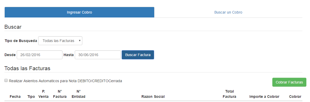 ClinicaWEB optimiza todo su trabajo contable y de cobranzas. Ingrese las fechas de la cobranza. Busque y obtenga las facturas a cobrar, ocnfigure sus asientos contables automáticos y listo, su cobranza se ha realizado con éxito. Obtenga la información completa de cobros y deudores todo en un solo lugar